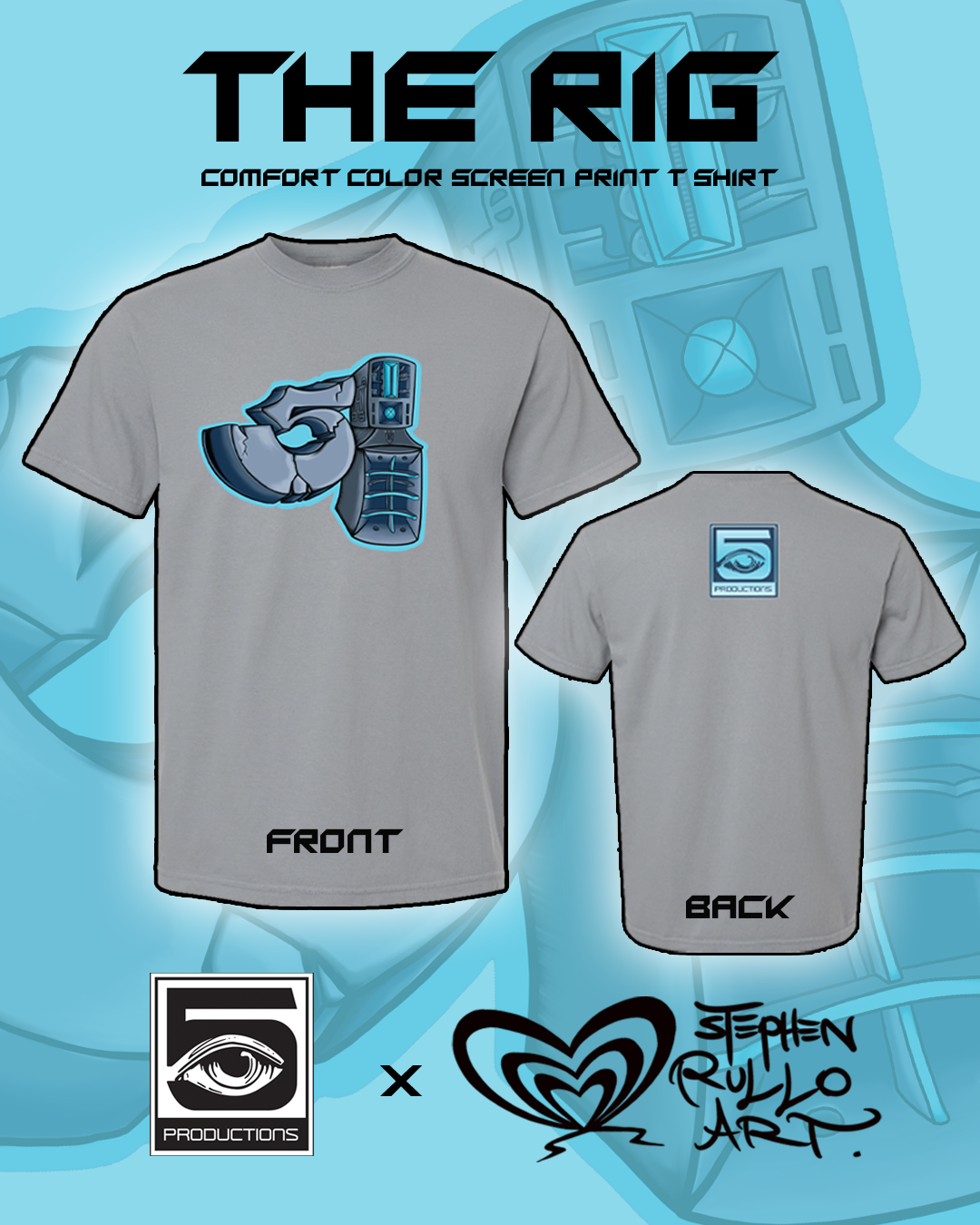 This double sided screen print t shirt features a design by Stephen Rullo Art